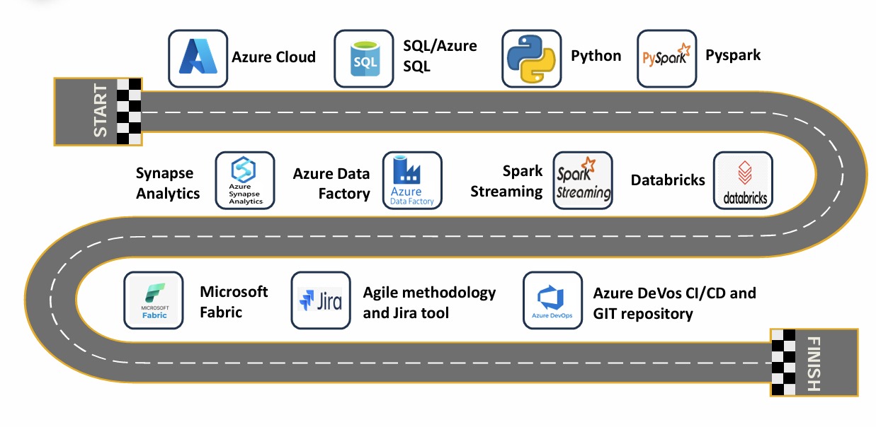 Azure Cloud, Azure SQL, Python, PySpark, Databricks, Azure Data Factory, Azure Synapse Analytics, Azure Data Lake, Spark, Spark Streaming, Azure DevOps (CI/CD), and Agile Methodologies.